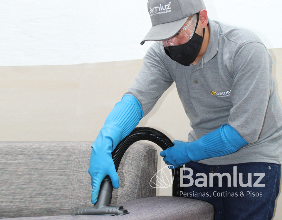 El lavado y desinfección de muebles inicia con el proceso de aspirado profundo de polvo y residuos que evita que estos ensucien las telas en el proceso siguiente.